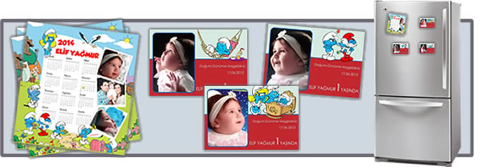 Elif Yağmur Bebeğin 1 Yaş Şirinler Magnetleri