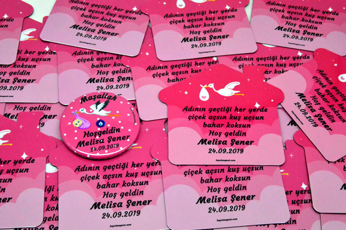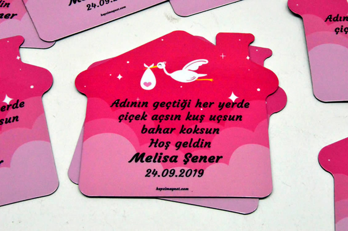 Ev şeklinde ince hoşgeldin bebeğim magneti.