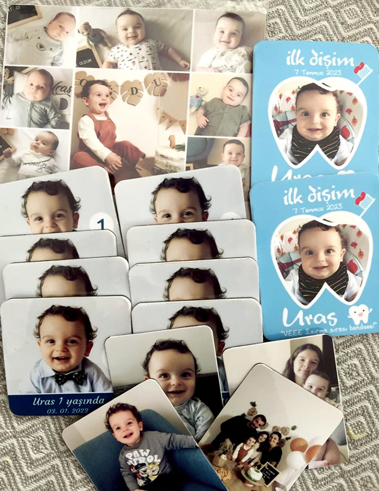 Uras bebeğin ilk diş ve erkek bebek 1 yaş doğum günü magneti, magnetinizi farklı yaş grupları için hazırlatabilirsiniz.