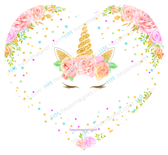 Kız bebek ve çocuklar için resimsiz Kalp Şekilli Unicorn Süsleme Temalı Magnet.