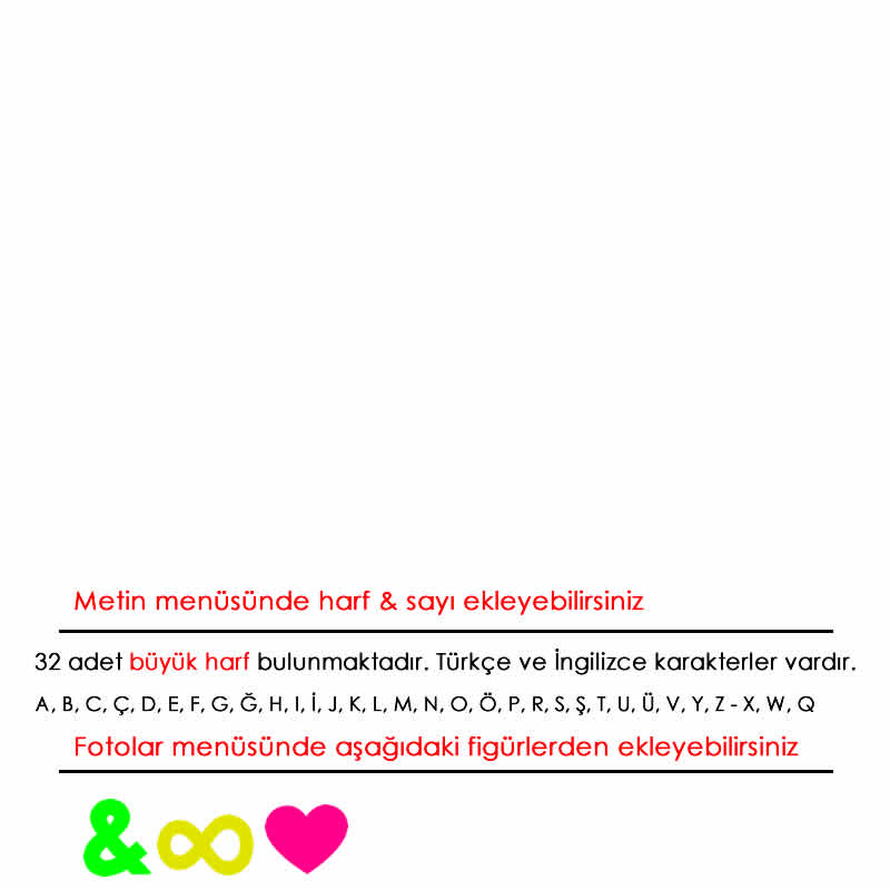 Ayrıca aşağıdaki ve, sonsuzluk işareti, kalp figürlerini alabilirsiniz.