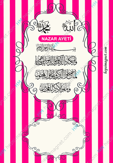 Kız bebek mevlüdü hediyelikleri "Mevlüd Hatırası" yazılı bebek mevlüdü ikramınız için pembe tonlarda resimsiz nazar ayetli magnet, modelimiz güzel ve kalıcı bir hatıradır.  Arkası mıknatıslı sade tasarımlı magnet örneğimizdir. Tasarım üzerindeki bilgileri değiştirerek kişiye özel resimsiz magnet olarak hazırlatabilirsiniz.