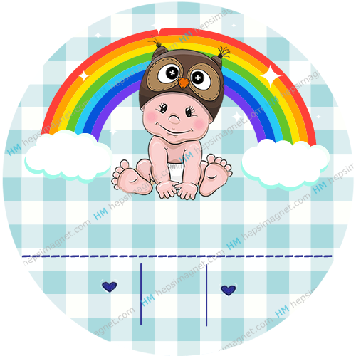 Bilgilerinizi ekledikten sonra Özelleştirmeyi Kaydet Butonuna basınız.Bebek ve gökkuşağı temalı mavi tonlarda bebek etiketi.