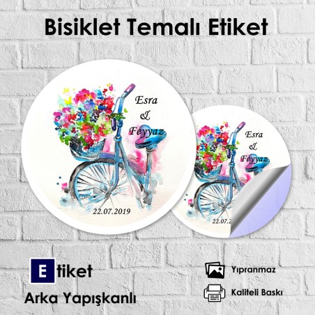 Bisiklet ve çiçek temalı yuvarlak etiket